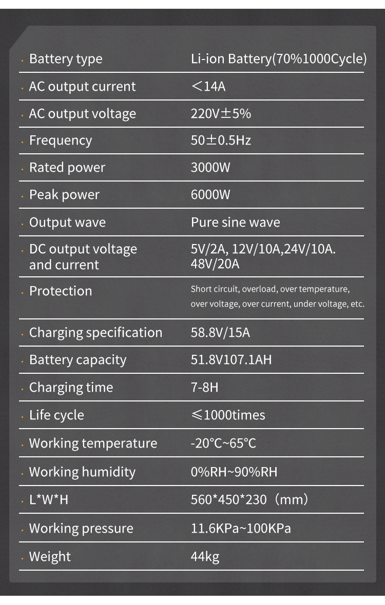 Battery capacity:51.8V/107.1AH